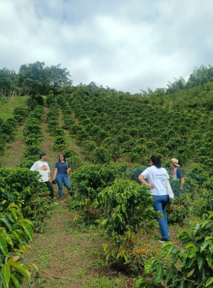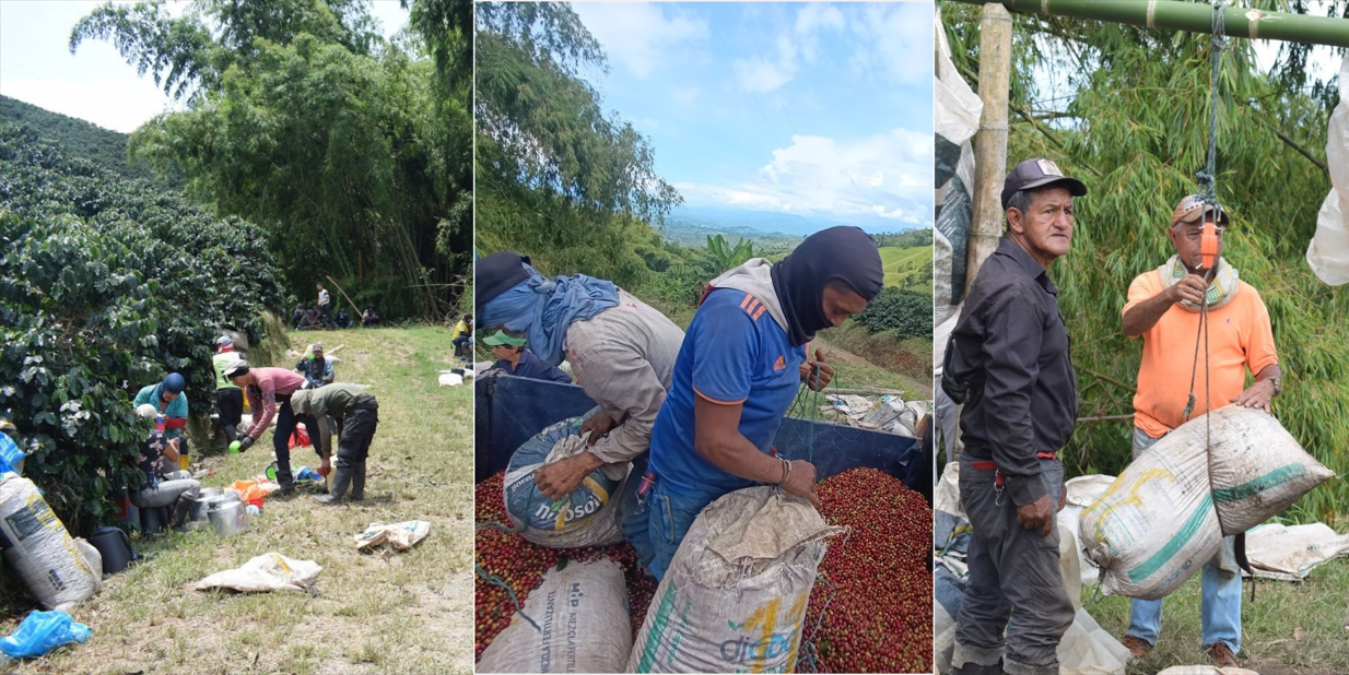 After a mandatory stop for lunch to recharge our batteries, we resumed our journey to the Llanitos area in the municipality of Villa María, just over an hour away. There, two farms awaited us, located opposite each other amidst the majestic coffee landscape: Finca La Gaviota and Finca Blanca Luz, owned by Don Ulises Valero and his son Andrés.